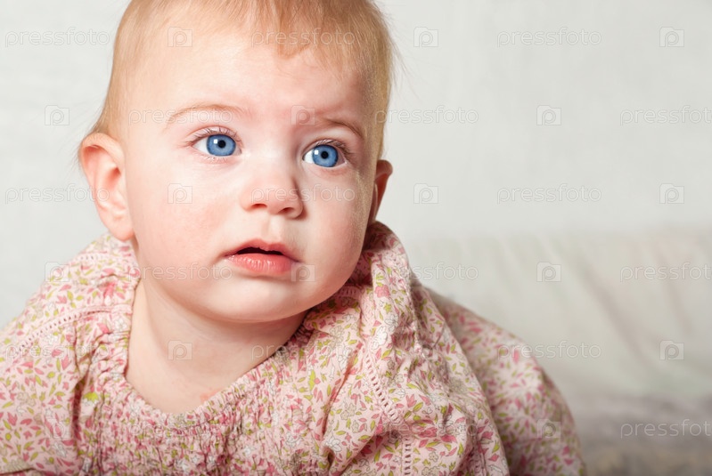 Малышка внимательно смотрит прямо перед собой