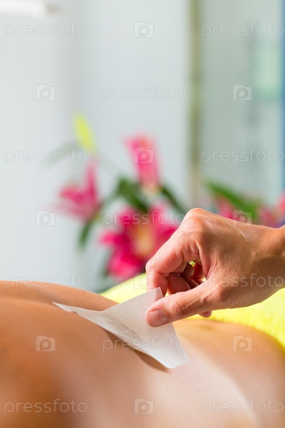 Женщина на процедуре удаления волос воском в спа-салоне