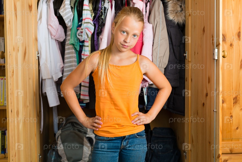 Девочка перед шкафом выбирает наряд