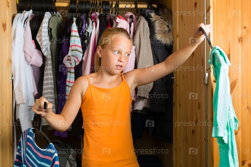 Девочка перед шкафом выбирает наряд