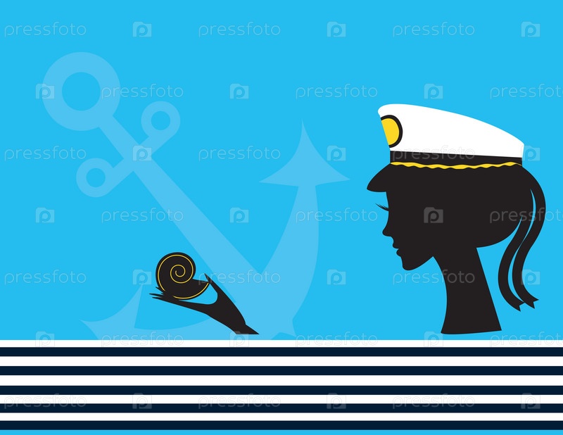 Девушка в капитанской фуражке с ракушкой