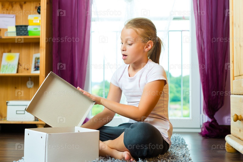 Девочка с коробкой в гостиной