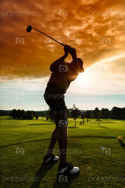 Молодой гольфист делает удар по мячу