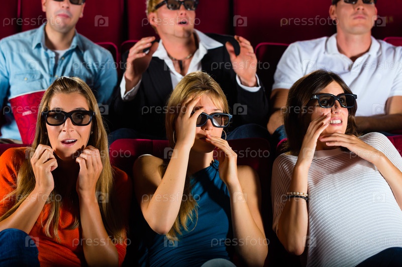 Молодые люди смотрят 3D-фильм в кинотеатре