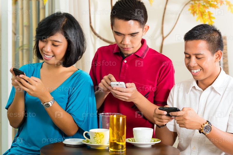 Азиатские люди с мобильными телефонами