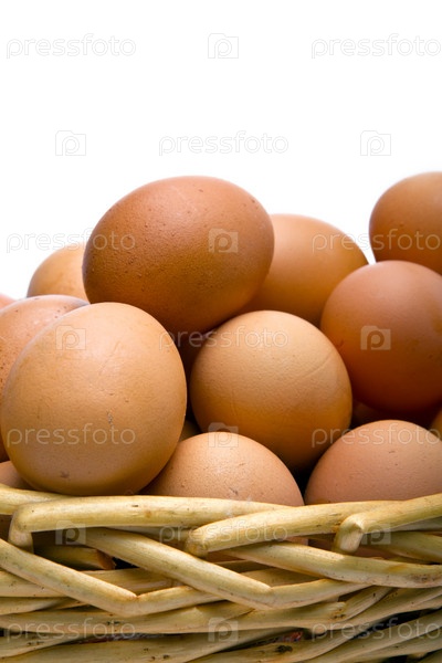 Яйца в корзине на белом фоне