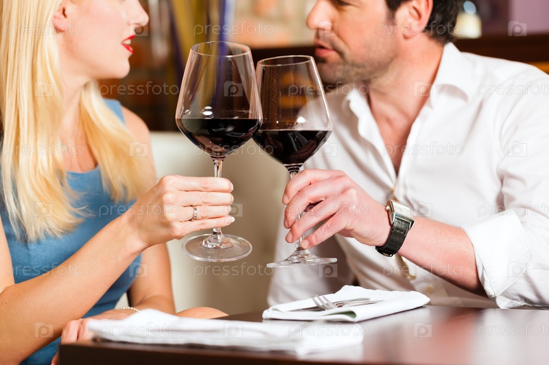 Привлекательная пара пьет красное вино в ресторане на первом свидании