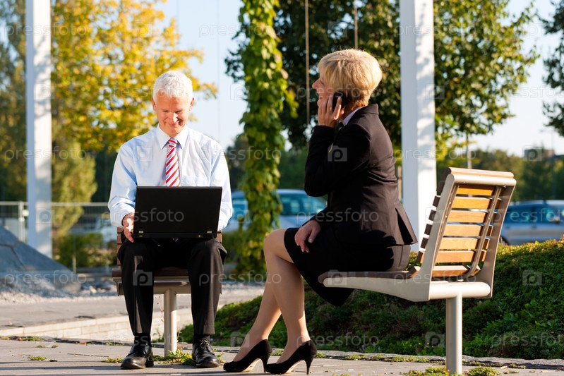 Мужчина и женщина на бизнес-коучинге на открытом воздухе