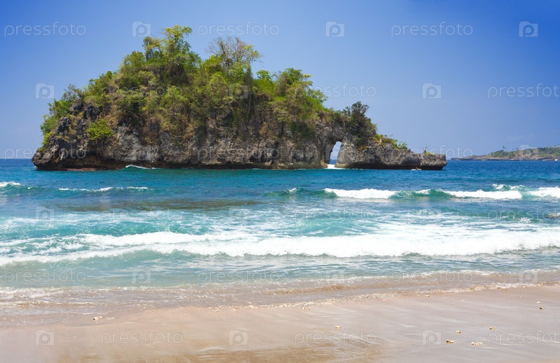 Берег океана и скала в Индонезии
