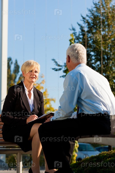 Мужчина и женщина на бизнес-коучинге на открытом воздухе