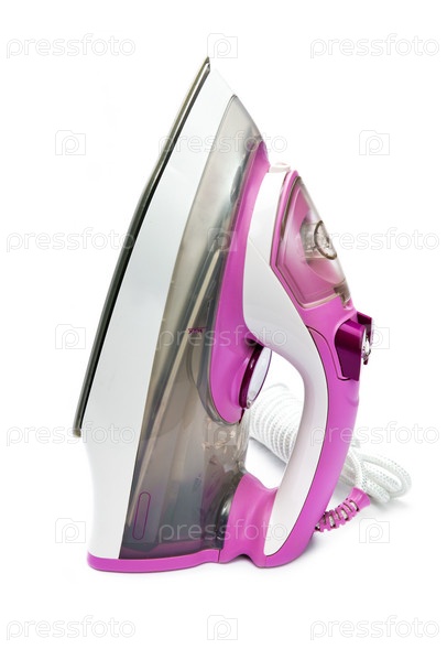 Современный новый электрический утюг на белом фоне