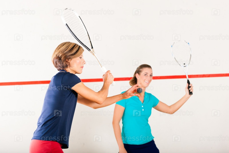 Две женщины играют в сквош в спортивном зале