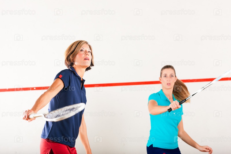 Две женщины играют в сквош в спортивном зале
