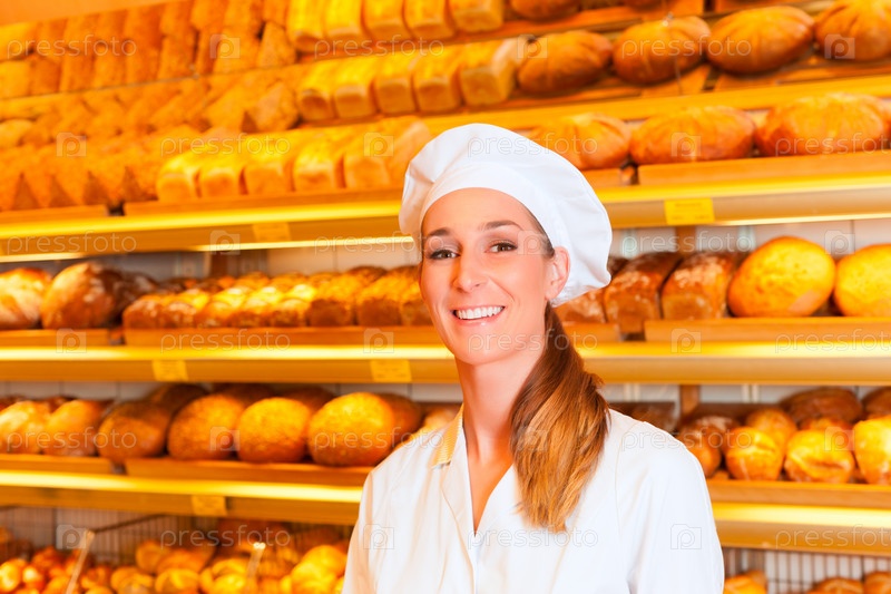 Женщина-пекарь в магазине свежей выпечки