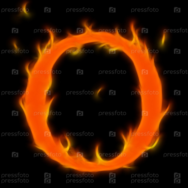 Абстрактный символ алфавита, имитируемый пламенем на черном фоне
