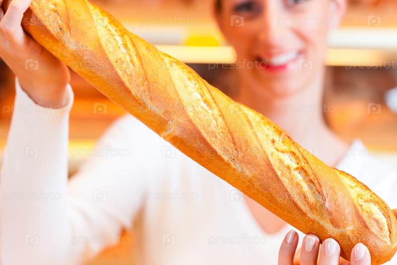 Женщина-пекарь с багетом