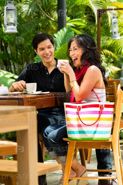 Азиатские мужчина и женщина в ресторане или кафе