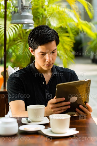 Азиатские мужчина в баре на открытом воздухе