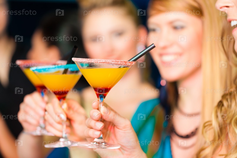 Молодые люди в баре пьют коктейли