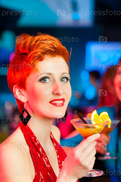 Веселые молодые женщины в баре пьют коктейли