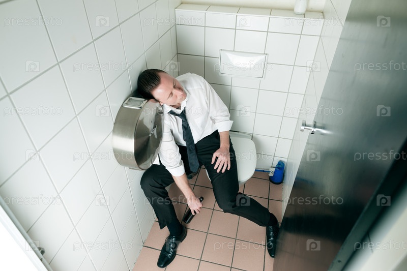 Пьяный молодой человек в туалете клуба