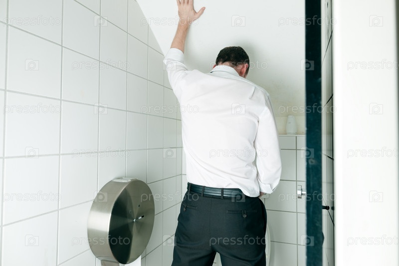 Мужчина мочится в туалете клуба