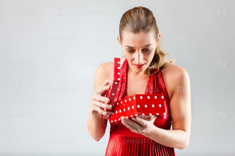 Счастливая женщина с открытым подарком