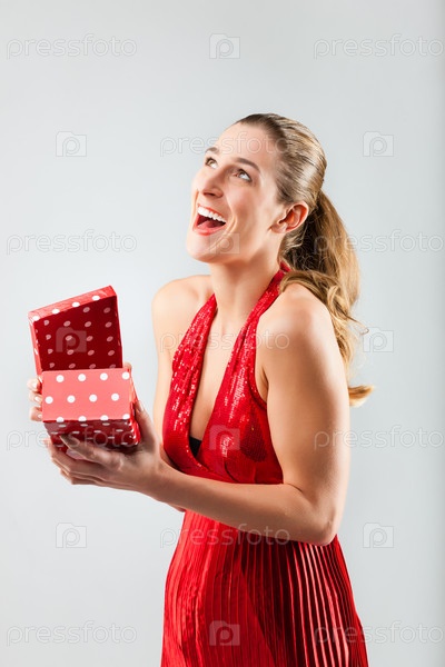 Счастливая женщина с открытым подарком