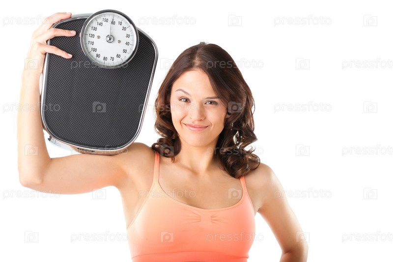 Довольная молодая женщина с весами