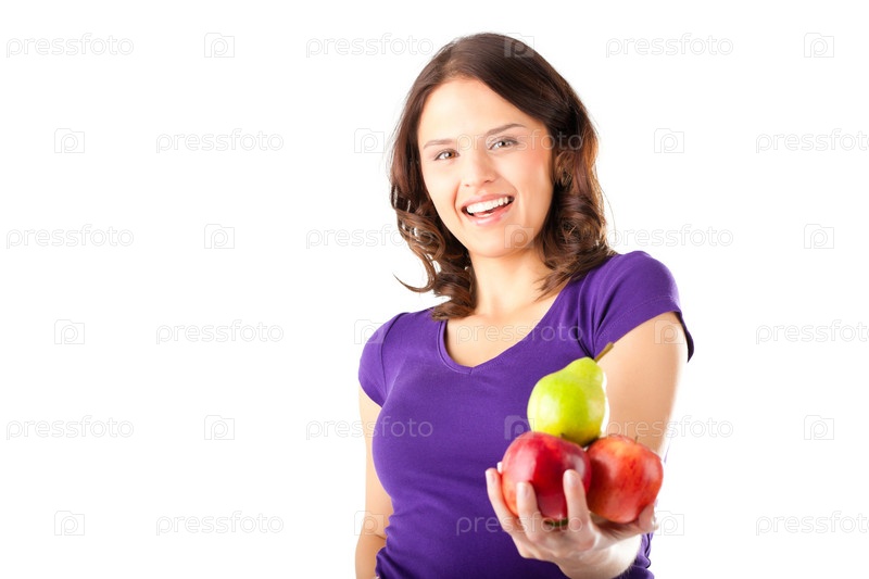 Женщина с яблоками и грушей