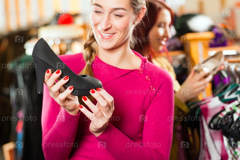 Молодая женщина выбирает обувь в магазине