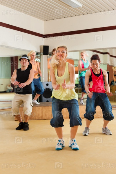 Молодые люди на танцевальной тренировке в тренажерном зале