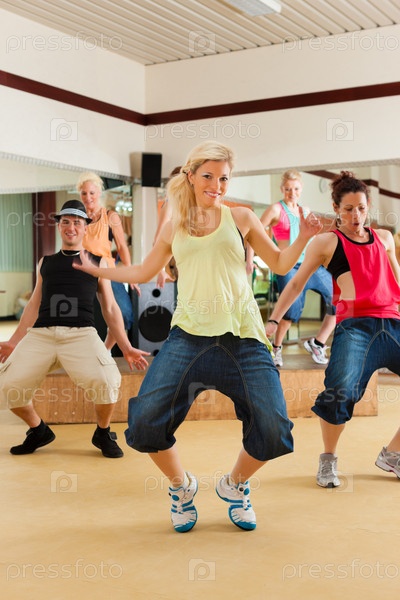 Молодые люди на танцевальной тренировке в тренажерном зале
