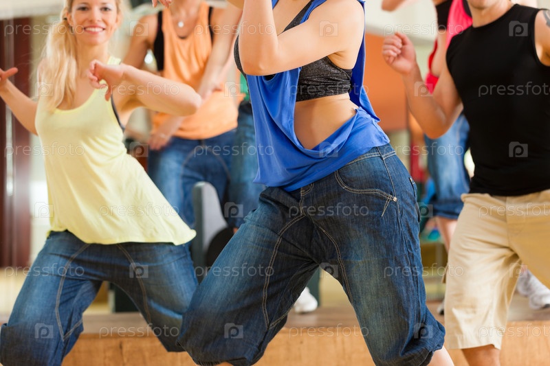 Молодые люди на танцевальной тренировке в тренажерном зале