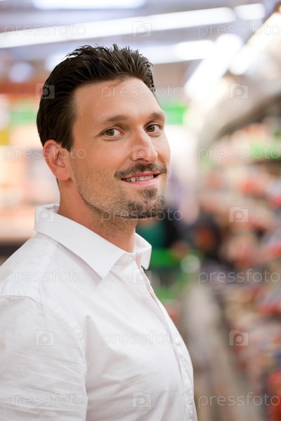 Молодой мужчина в супермаркете
