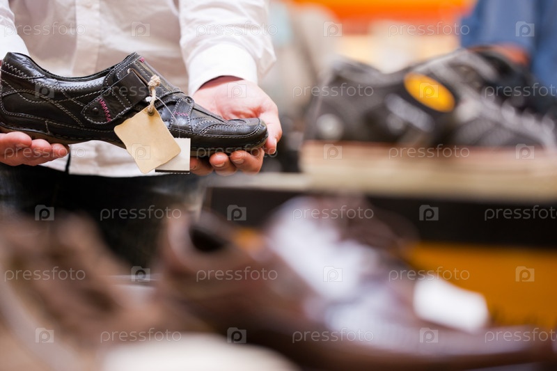 Мужчина выбирает обувь в супермаркете