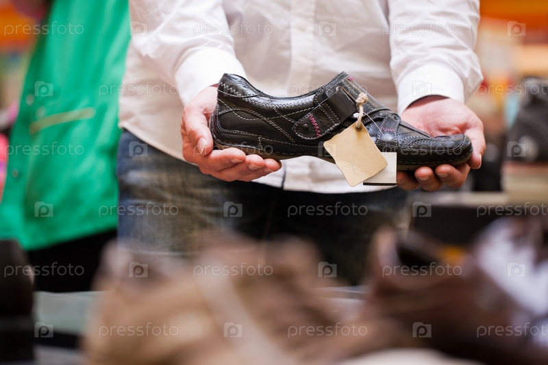 Мужчина выбирает обувь в супермаркете