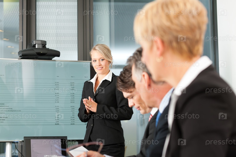 Бизнес-презентация. Женщина стоит перед экраном