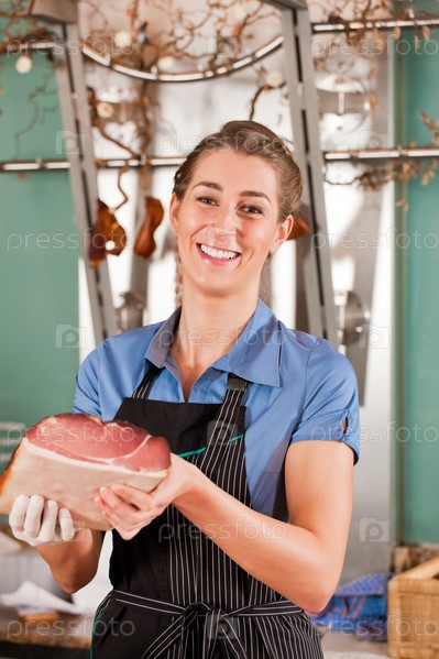 Женщина-мясник с куском мяса
