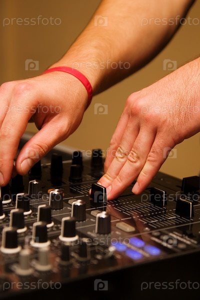 Мужские руки за диджейским пультом
