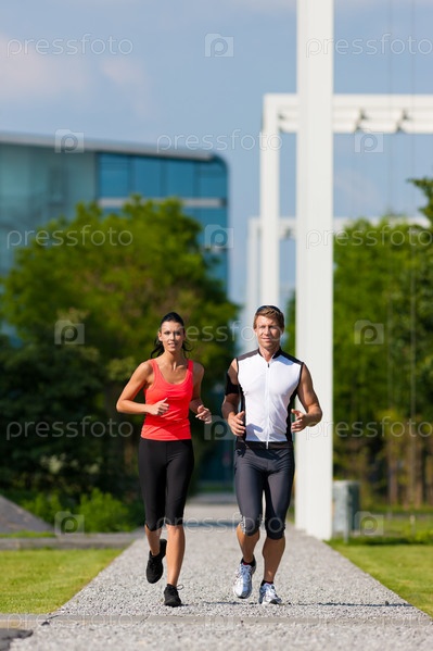 Пара на пробежке в городе в летний день