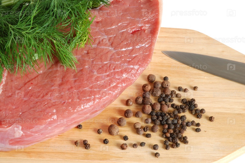 Сырое говядино с пряностями и фенхелем на деревянной доске