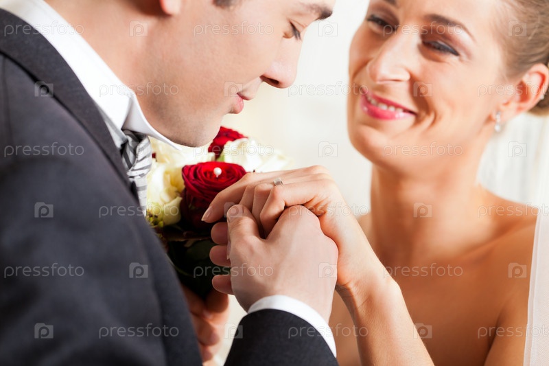 Свадьба, жених целует руку невесте