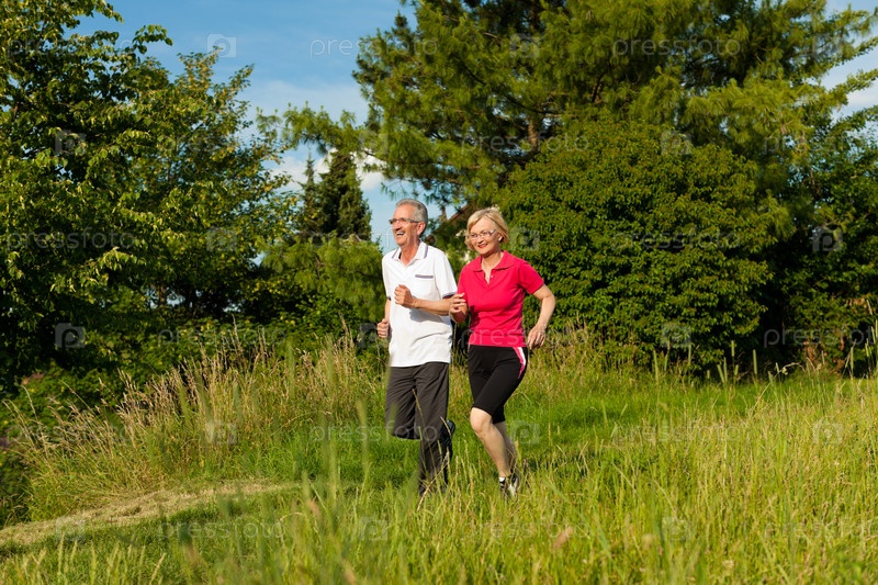Счастливая пожилая пара занимается спортом на открытом воздухе