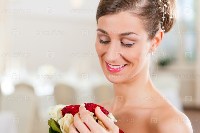 Невеста с букетом в торжественном зале