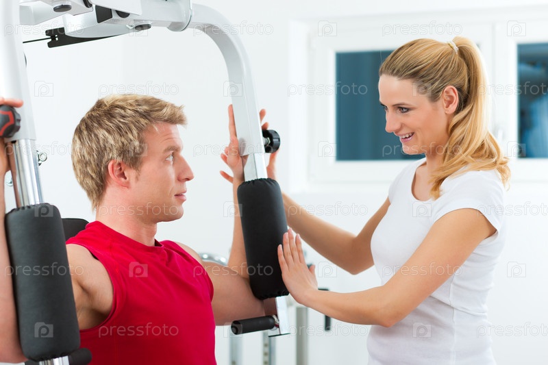 Пациент на процедуре физиотерапии делает упражнения с терапевтом