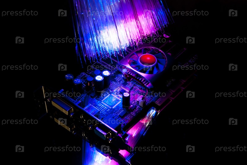 Видеокарта в темноте с волоконной оптикой