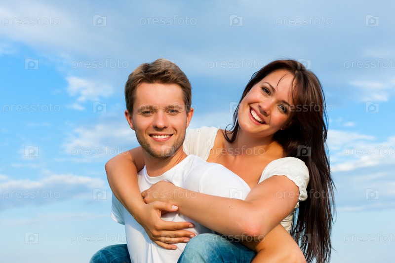 Счастливая пара на фоне голубого неба