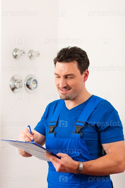 Техник снимает показания водосчетчика