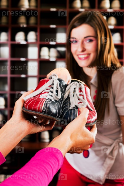 Женщина берет обувь для боулинга
